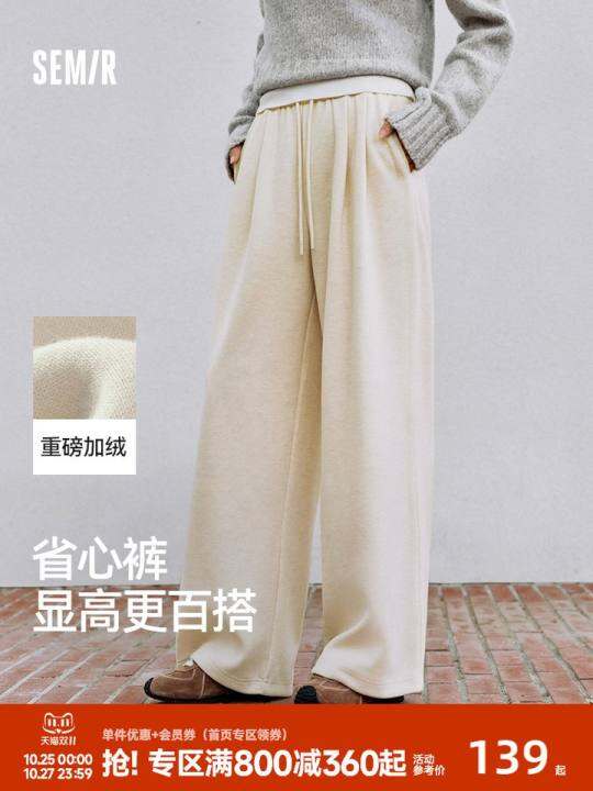 森马休闲裤女冬季宽松白色裤子彷呢阔腿裤垂感2025新款慵懒糯米裤