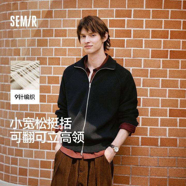 森马针织衫男高领毛衫情侣款开 𫔭衫外套可内搭秋季上衣纯色基础百搭