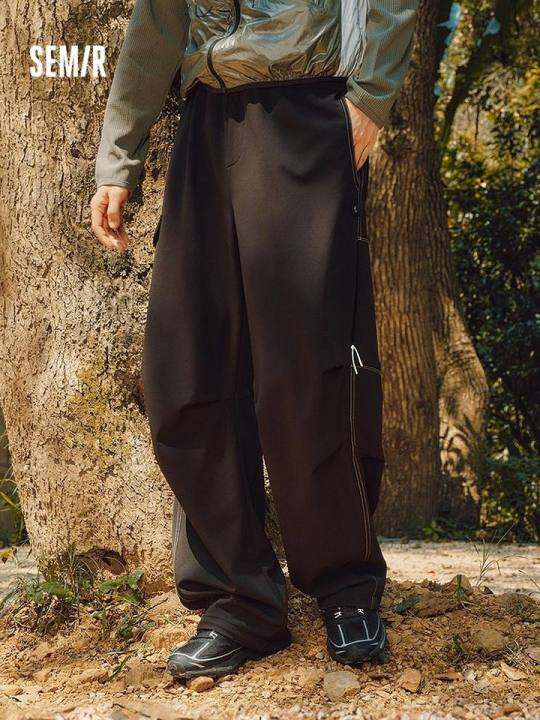 森马休闲裤男冬季加绒宽松弧形裤2025新款时尚流行户外运动伞兵裤