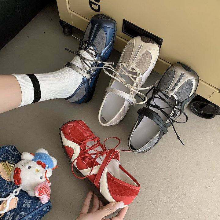 柚子初方头运动玛丽珍鞋女2025夏季新款蝴蝶结软底镂空芭蕾舞单鞋