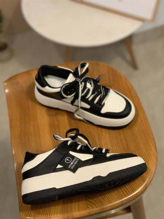 拼色厚底板鞋女真皮小白鞋2024春季新款女鞋百搭运动休闲鞋熊猫鞋