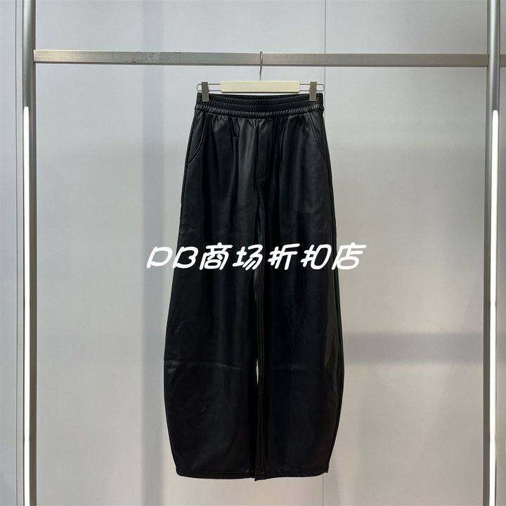 PEACEXWAN女装2024春新款时尚百搭休闲宽松黑色PU香蕉裤阔腿皮裤