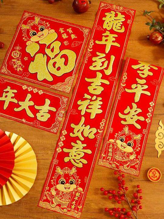 新年高档绒布对联2024龙年生肖立体绒面过年春联福字春节自粘门贴