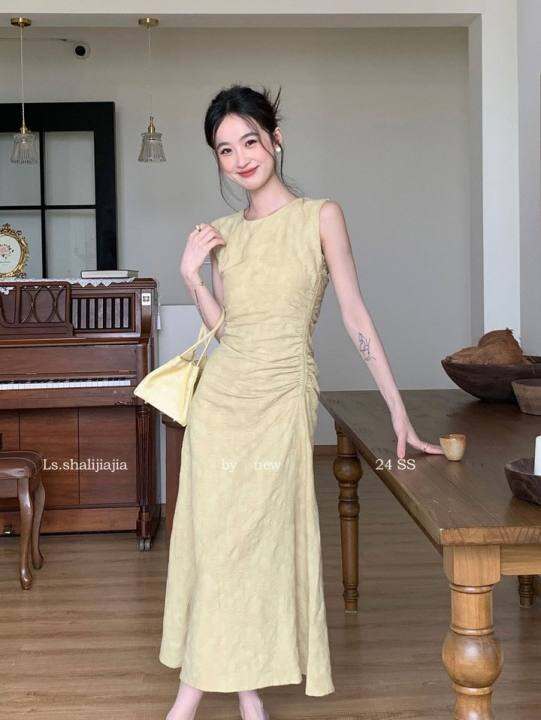 LS SHALIJIAJIA2024夏季新品女装无袖显瘦气质连衣裙