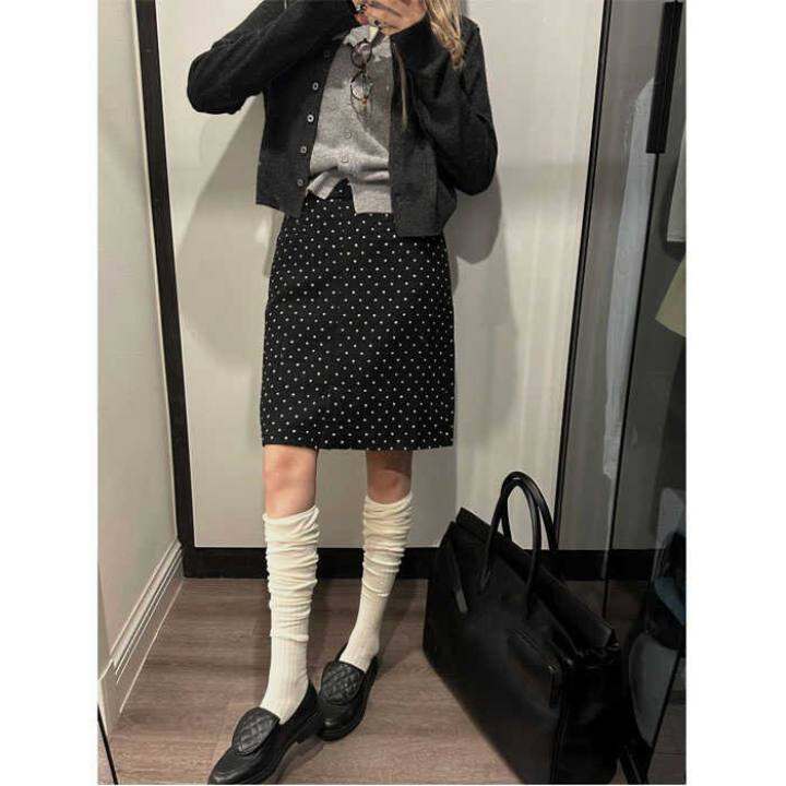 miu系波点半身裙女2024新款秋冬大码胖mm高腰韩系毛呢包臀中长裙