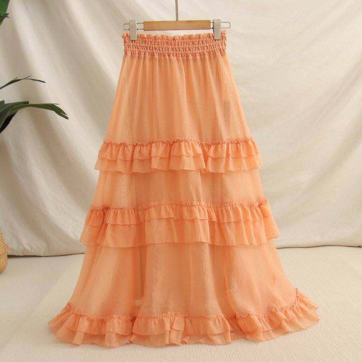 041671 日单 三色入 超仙花苞松紧腰层叠蛋糕裙摆半身裙 BC19-4