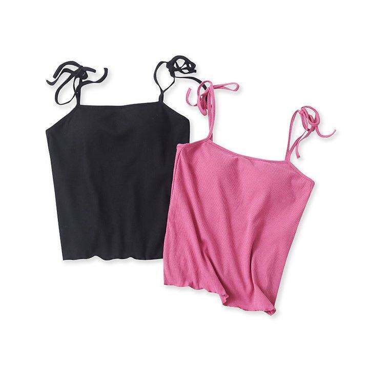 外贸日单女士吊带背心洋气修身打底内衣带胸垫显瘦外穿美背文胸
