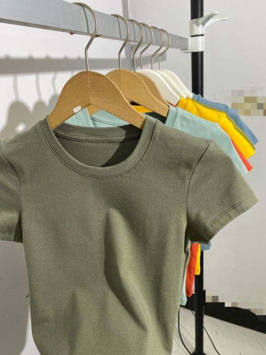 女装圆领短T恤高腰短袖修身打底千禧风客供外贸余料辣妹多巴胺