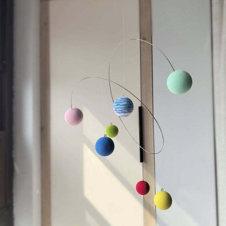 这种不同位置、大小的球体挂件能让宝宝初步理解“上下、前后、远近”的空间关系。
