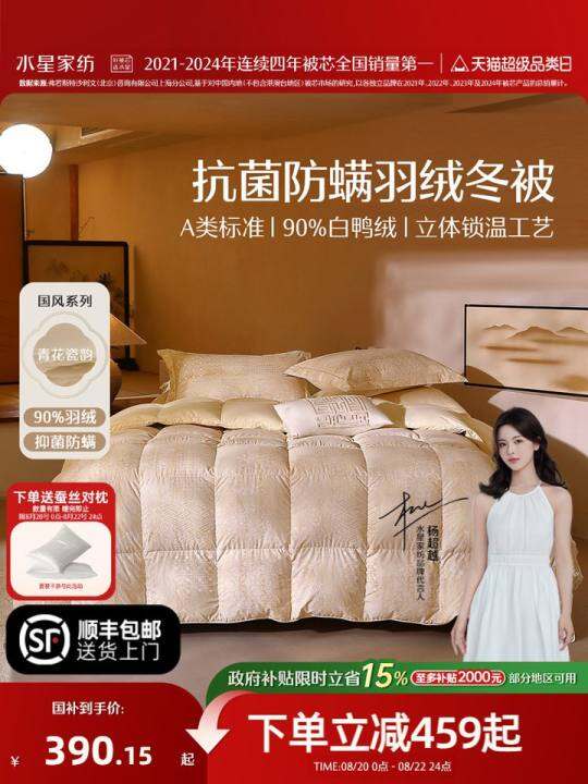 水星家纺90白羽绒四季被子被芯高蓬松冬被保暖抗菌防螨单双人被