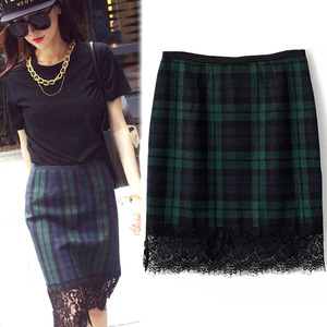 双12 呛口小辣椒英伦蕾丝毛呢拼接撞色格子收腰包臀裙短裙半身裙