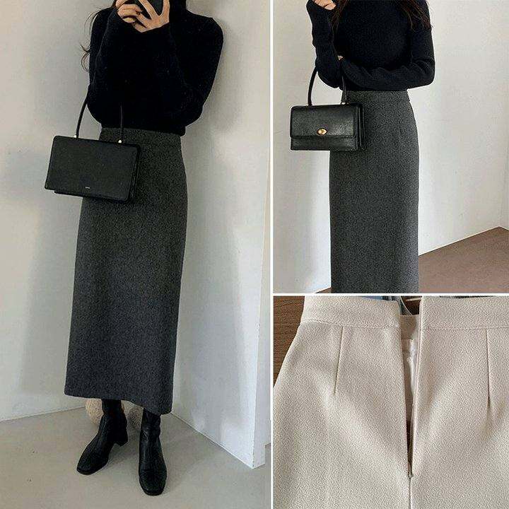 灰色毛呢半身裙秋冬女2024新款高腰显瘦直筒裙子后开叉一步裙长裙