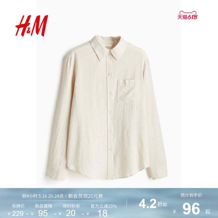 HM女装夏季休闲翻折领松驰感亚麻混纺衬衫休闲舒适上衣1213682