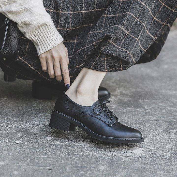 英伦风小皮鞋女2024新款中跟黑色工作高跟鞋公考职业正装面试女鞋