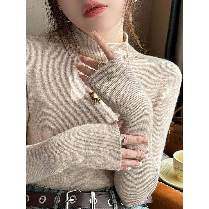 纯色半高领打底衫内搭女秋冬高级感毛衣2025新款套头长袖针织上衣