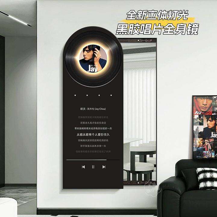 可定制暗藏式全身镜子画 画客厅装饰画 画推拉全身镜隐藏式黑胶唱片立体
