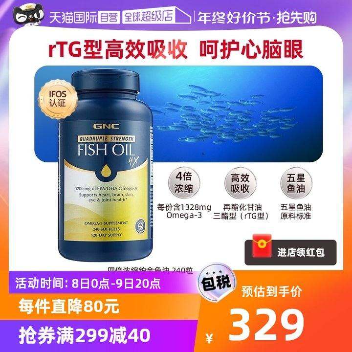 【自营】GNC健安喜四倍铂金深海鱼油欧米伽omega3高含量中老年