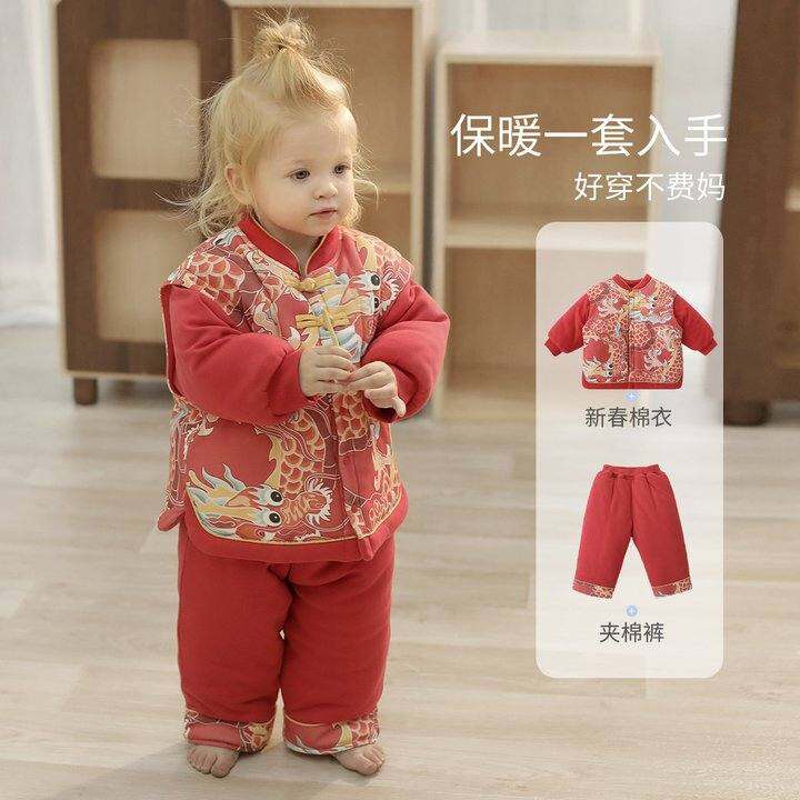 儿童秋冬棉服套装加厚保暖男童新年服女童夹棉两件套国风宝宝棉衣