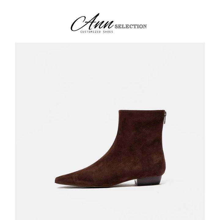 ANN复古方头靴子女2024秋季新款小众洋气低跟短靴鳄鱼纹切尔西靴