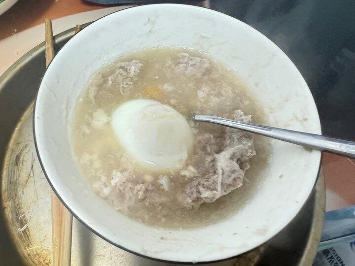 鸡蛋肉泥汤,按照这个,肉很嫩,我用的里脊肉。