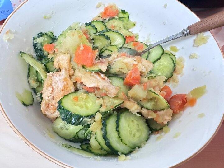 一个 250 克土豆、100 克胡萝卜、150 克鸡胸肉、300 克黄瓜,啊哈哈哈。