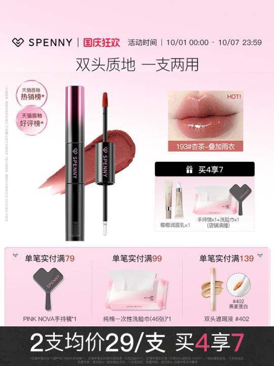 诗佩妮双头唇釉镜面水光嘟嘟唇泥不易沾杯口红学生平价亚裔妆容