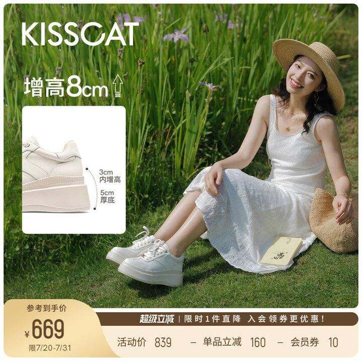 [沈月/秦岚同款]接吻猫[8cm内增高太妃糖]厚底德训鞋小白鞋