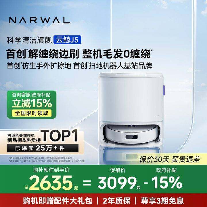 【政府补贴15%】云鲸J5扫地机器人智能彷生手扫拖地一体毛发0缠绕