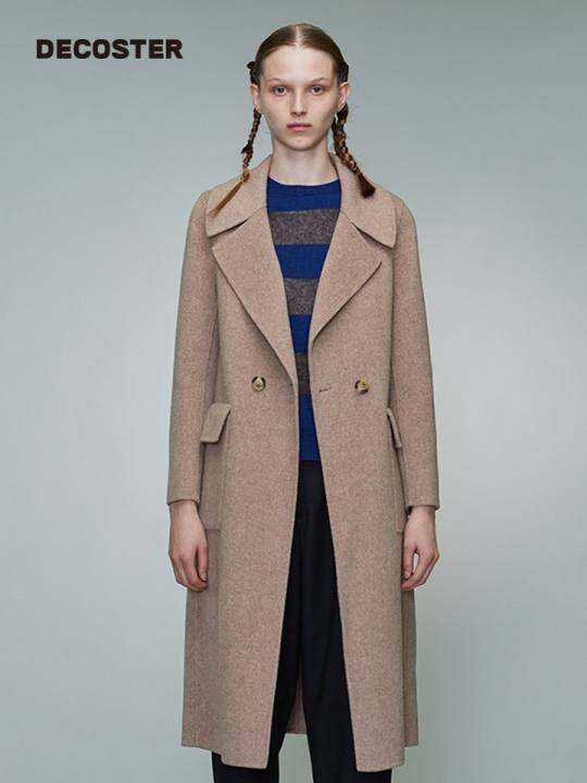 DECOSTER/德诗春季新款品牌女装时尚驼色中长款长袖羊毛大衣