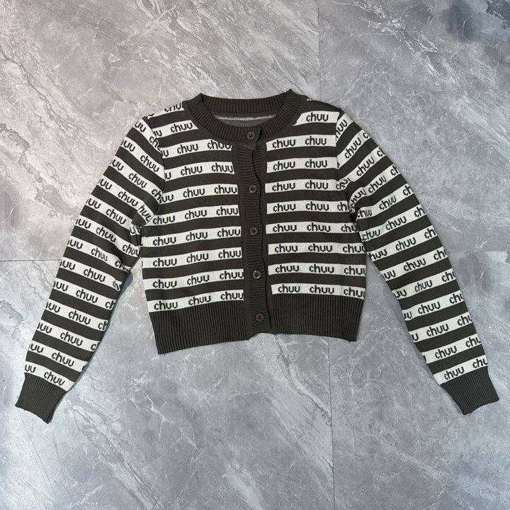 10.22拆标 秋单排扣条纹针织开衫女字母提花通勤简约上衣