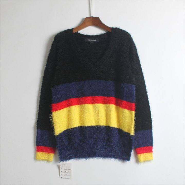 外贸尾单女装秋冬款眉毛保暖时尚撞色优雅V领长袖套头针织衫69579