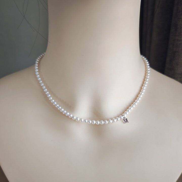 4-4.5mm正圆微瑕极强光淡水有核珍珠项链 S925竹子银扣41cm不可调