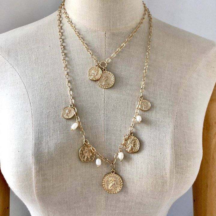 【芝麻芒果】美单Ettika淡水珍珠装饰双面coin长款毛衣链项链