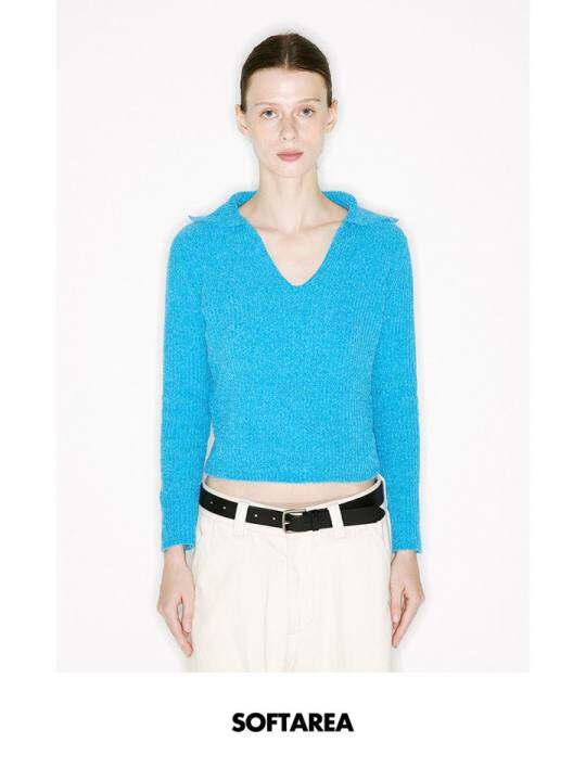 SOFTAREA 肌理感长袖修身T恤女士休闲短款上衣v领毛衣慵懒高级感