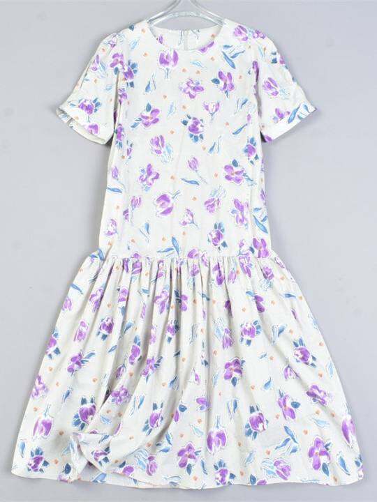 韩版纯棉碎花短袖连衣裙5.20L82713夏季宽松显瘦遮肉胖mm大摆长裙