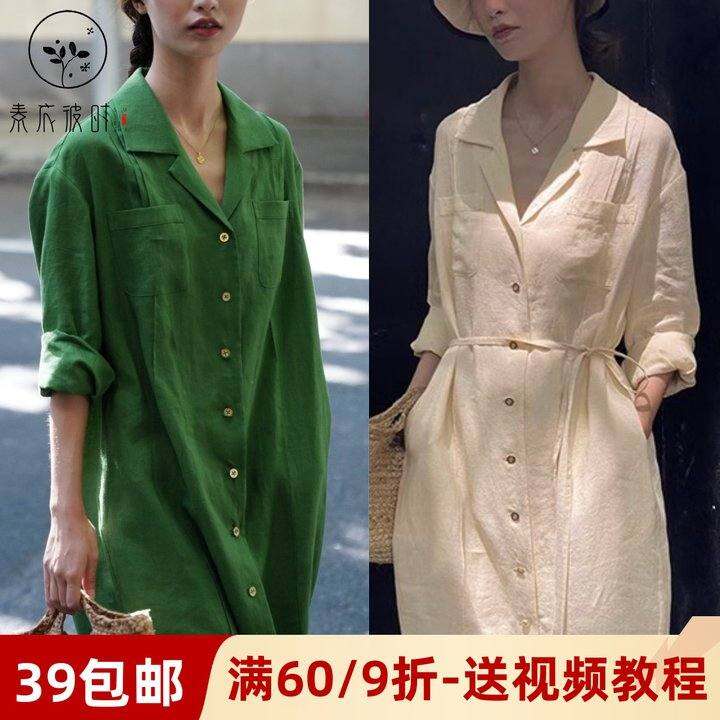 素衣彼时3602古巴领法式衬衫裙纸样小众别致连衣裙女夏长款样板图