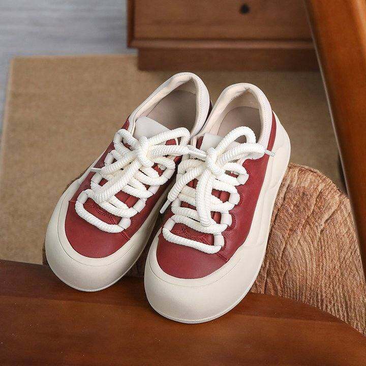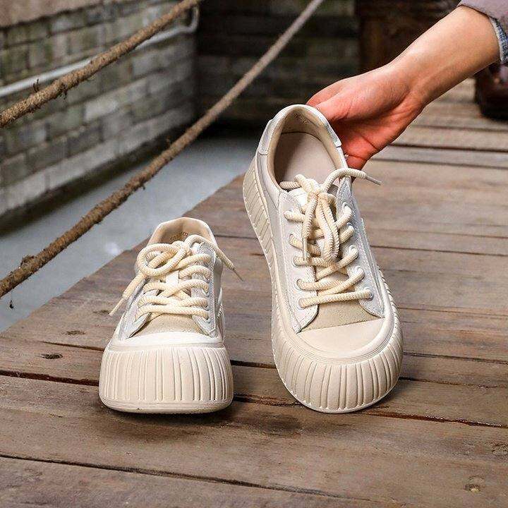 拙雅(头层牛皮面包鞋)百搭女休闲鞋厚底软底真皮板鞋小白鞋增高