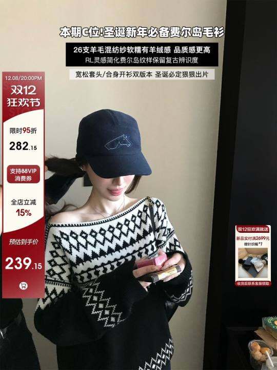 'RL冬日费尔岛'26支软糯厚实羊毛纱 复古老钱撞色提花双版本毛衫