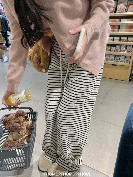 PPHOME自制~加绒条纹裤 宝宝绒休闲裤女秋冬裤子慵懒遛弯裤直筒裤