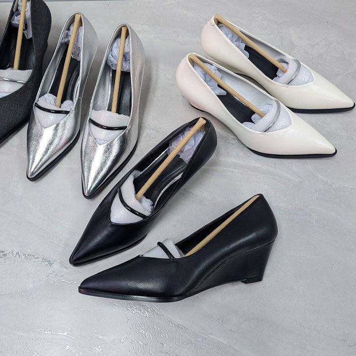 外贸捡~出日本~不累脚高档轻职风尖头坡跟单鞋女轻便细带浅口鞋软