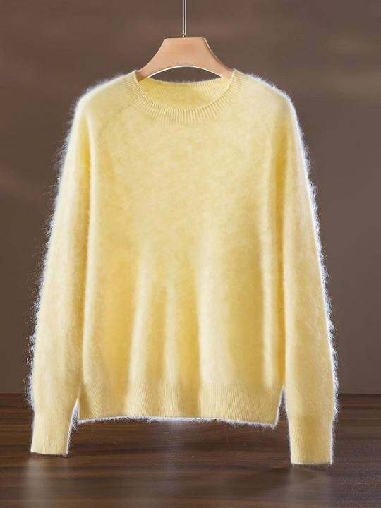 96.5%羊毛3.5%羊绒水洗拉毛针织衫毛衣圆领百搭打底衫高端简约秋冬女