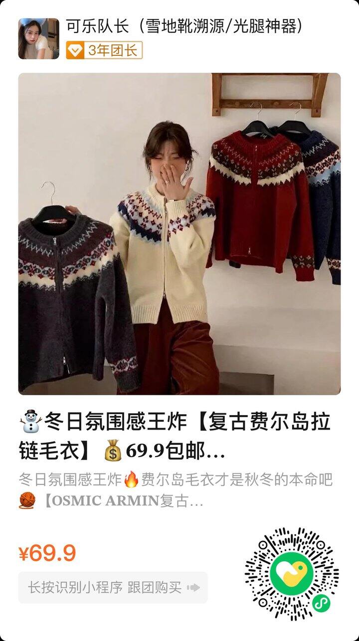 【 费尔岛拉链毛衣 】