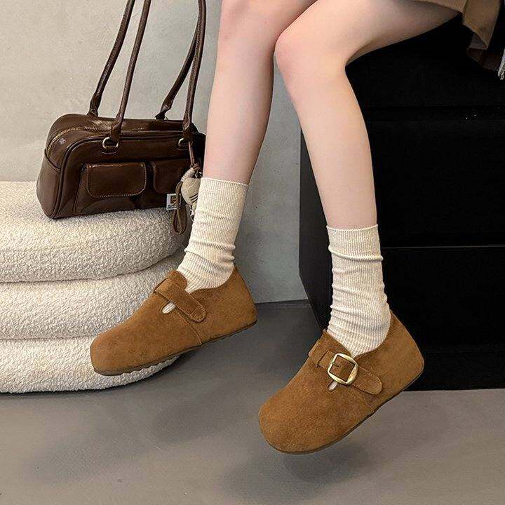 厚底内增高全包勃肯鞋女鞋2026新款秋冬一脚蹬加绒单鞋豆豆二棉鞋