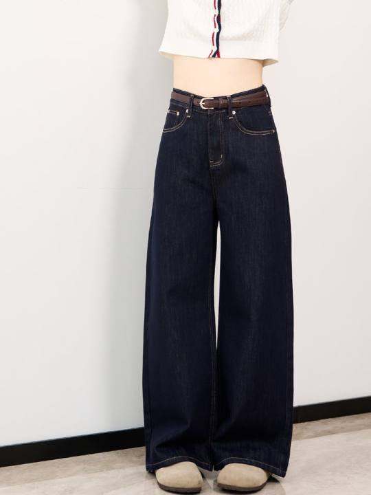 深色女士宽松阔腿牛仔裤,初秋,高腰,修身,宽松,梨形身材,遮住臀部,韩式直筒裤