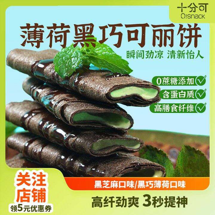 十分可黑芝麻杏仁可丽饼高蛋白黑巧薄荷味夹心高纤80g/盒酥脆零食