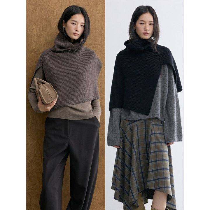 之华/氛围感保暖神器!M.ORO羊绒混纺粗针高领多穿造型披肩围脖
