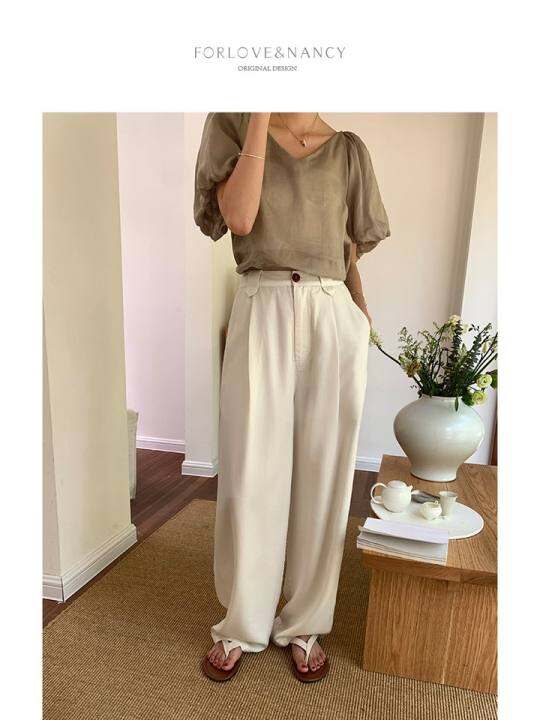 爱与南希原创设计师女装2024春新款休闲西装裤垂感天丝阔腿拖地裤