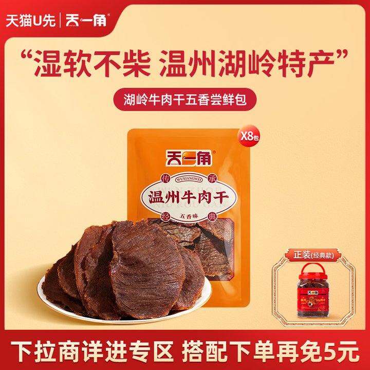 【U先试用】天一角五香牛肉干零食温州湖岭特产手撕黑片尝鲜装8包