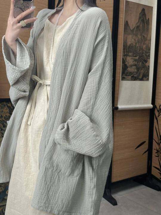 沐子自制《川谷》开衫套装 苎麻无袖系带连衣裙搭棉纱外套清冷感