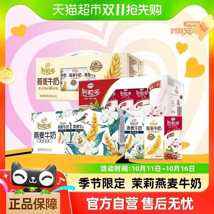 【于适同款】伊利谷粒多茉莉花茶燕麦牛奶200ml*12盒整箱礼盒早餐